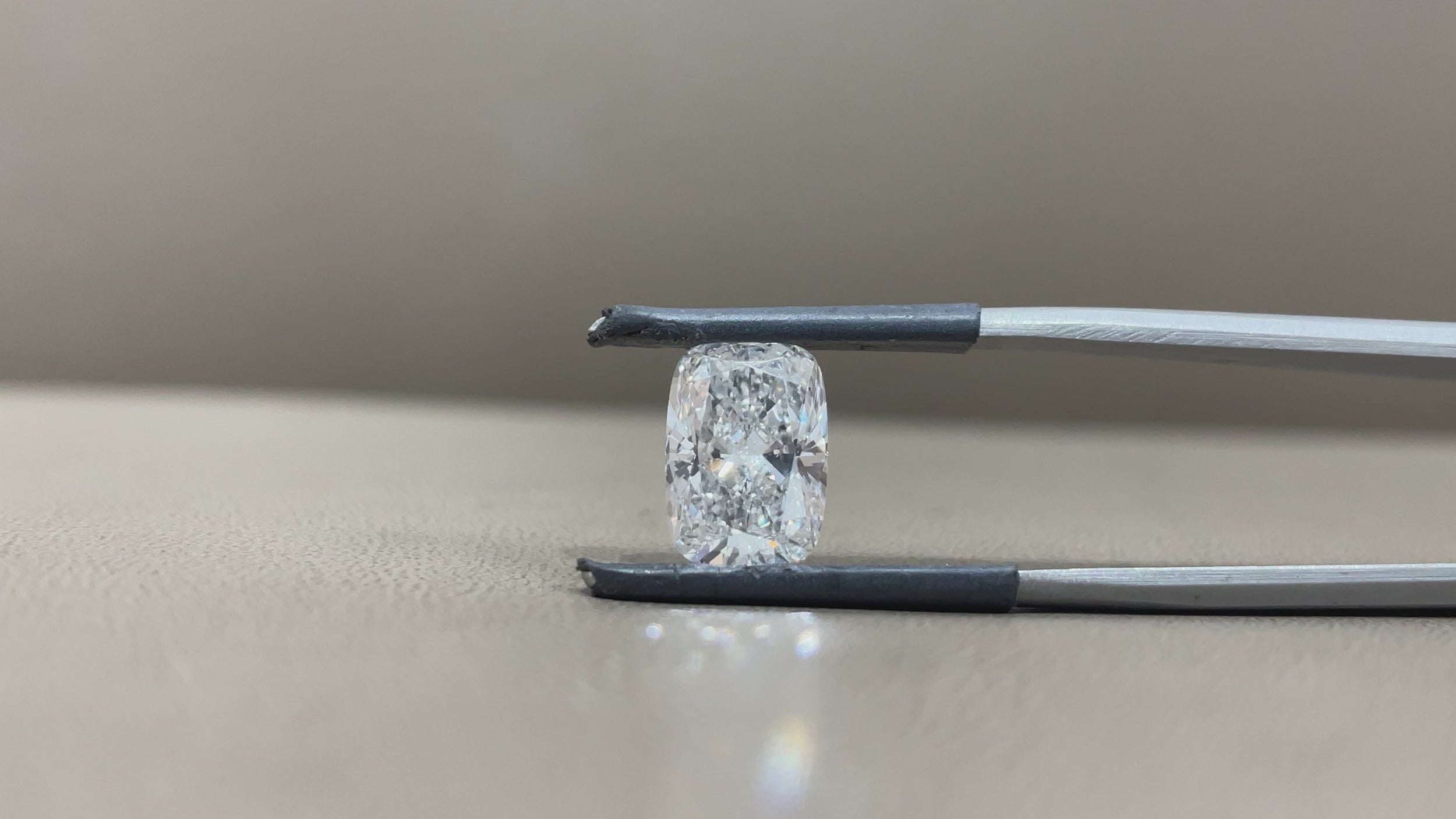 Hand-selected for its refined proportion and light performance, this 3.08ct elongated cushion offers a bright, fluid sparkle and a softly rounded, elegant silhouette. Its D color grade keeps the diamond beautifully crisp from every angle, while the VS1 clarity provides a clean, unobstructed face-up look. Finished with excellent polish and symmetry, it reflects light with a balanced, graceful presence that feels both modern and timeless.