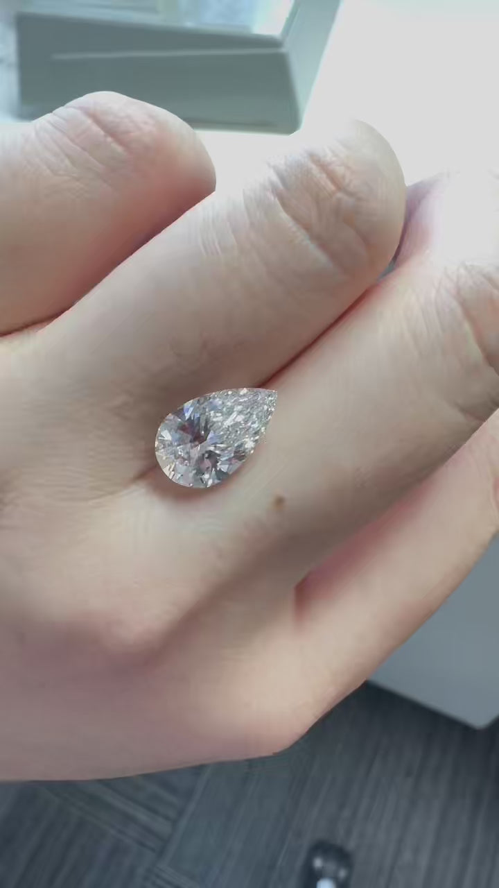 Hand-selected for its bright, refined presence, this 3.05ct D-color pear diamond offers a clean, luminous face-up look with a graceful, elongated silhouette. Its proportions with a balanced taper create a flattering shape on the hand, while the VS2 clarity presents an eye-clean appearance in everyday light.